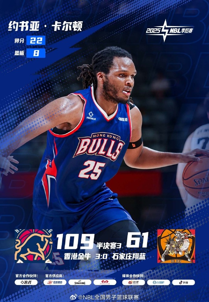 【戰(zhàn)報(bào)】2025年NBL季后賽,半決賽中國香港金牛??石家莊翔藍(lán)的系列賽G3今晚戰(zhàn)罷,中國香港金牛109:61大勝對手,大比分3:0率先殺入總決賽。