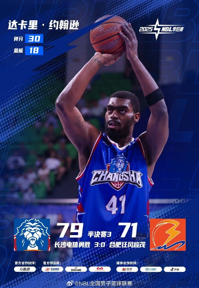 2025年NBL季后賽,半決賽長沙電信勇勝??合肥狂風(fēng)峻茂的系列賽G3今晚戰(zhàn)罷,雙方爭奪激烈,最終長沙勇勝79:71戰(zhàn)勝對手,大比分3:0晉級,與中國香港金牛會師總決賽。
