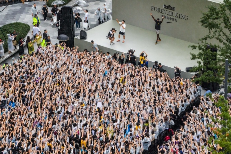 “在中國成都的一座四層購物中心內(nèi),‘LBJ!LBJ!LBJ!’的歡呼聲震耳欲聾。數(shù)百名球迷擠在每一層的欄桿旁,急切地等待著一睹‘永遠的國王’勒布朗-詹姆斯的風采。距離勒布朗上次訪問中國已有近六年的時間,而這次他是在2005年首次隨耐克訪問中國的20周年之際重返中國。
