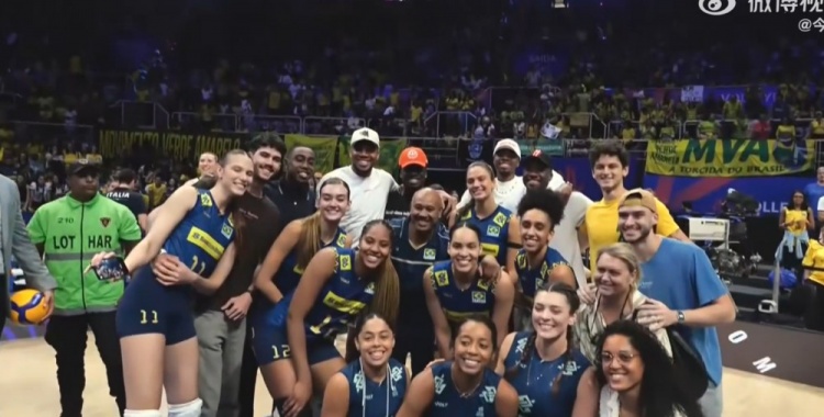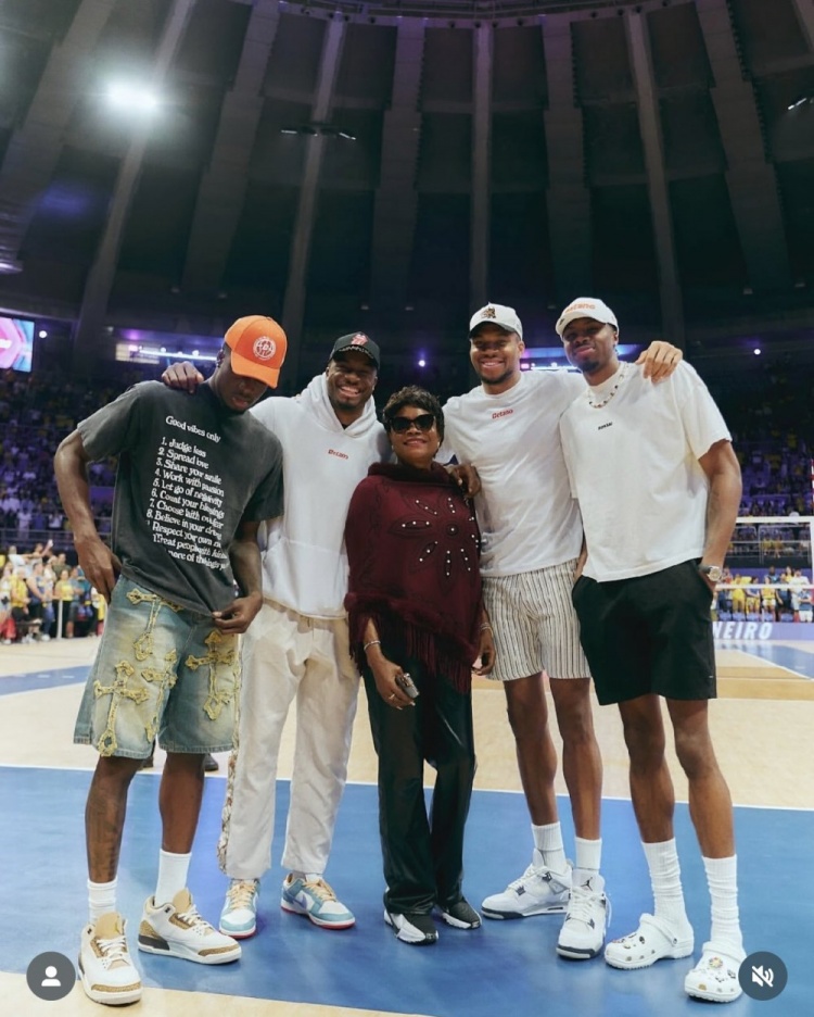6月9日訊 今日,雄鹿球星字母哥攜哥哥薩納西斯(左二)、弟弟科斯塔斯(右一)、亞歷克斯(左一)還有母親前往巴西,觀看了2025世界女排聯(lián)賽分站賽第一周巴西女排vs意大利女排的比賽,賽后還與女排隊員親切合影。