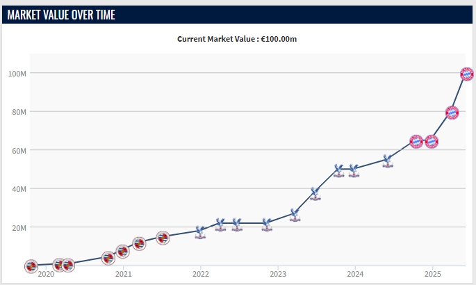 去年夏窗,拜仁花費(fèi)5300萬歐從水晶宮簽下奧利塞,當(dāng)時(shí)奧利塞身價(jià)5500萬歐。