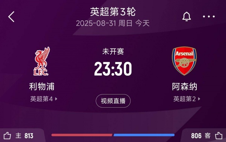熱刺輸球后,英超還剩下利物浦和阿森納兩支全勝的球隊。而在今晚23:30,兩隊將迎來正面交鋒。