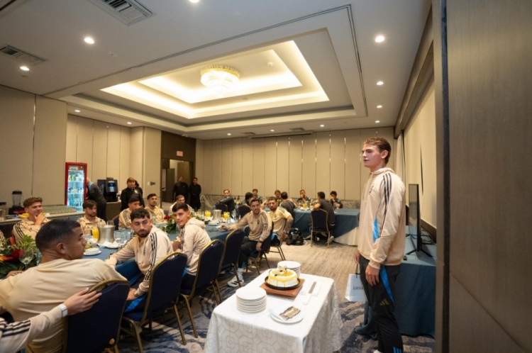 阿根廷隊(duì)正在征戰(zhàn)世預(yù)賽南美區(qū),隊(duì)內(nèi)中場(chǎng)尼科-帕斯在9月8日度過自己的21歲生日,全隊(duì)舉辦儀式為這位球員慶祝生日。