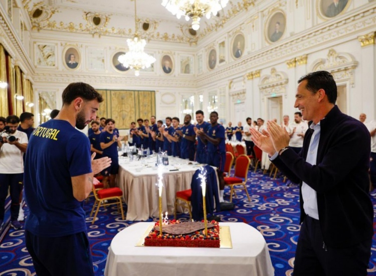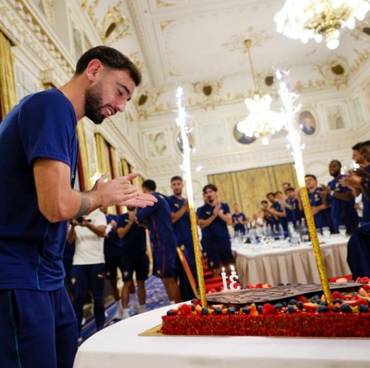 9月9日訊 9月8日是葡萄牙中場(chǎng)布魯諾-費(fèi)爾南德斯的生日,由于適逢國(guó)際比賽日,曼聯(lián)隊(duì)長(zhǎng)和國(guó)家隊(duì)隊(duì)友度過了一個(gè)難忘的生日。