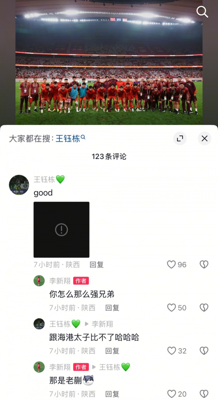 評(píng)論區(qū)王鈺棟與李新翔進(jìn)行互動(dòng):