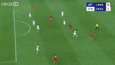 第56分鐘,加布里埃爾底線橫傳,劉若釩包抄雙響,海港4-1領(lǐng)先玉昆。