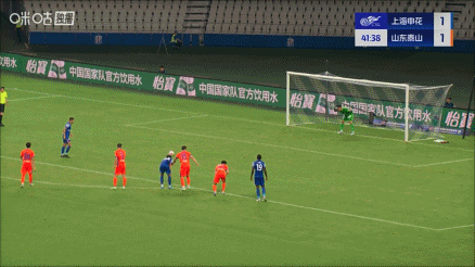 第40分鐘,劉誠(chéng)宇搶斷洛佩斯,王大雷出擊犯規(guī),裁判判罰點(diǎn)球。吳曦主罰命中,申花2-1再度領(lǐng)先!