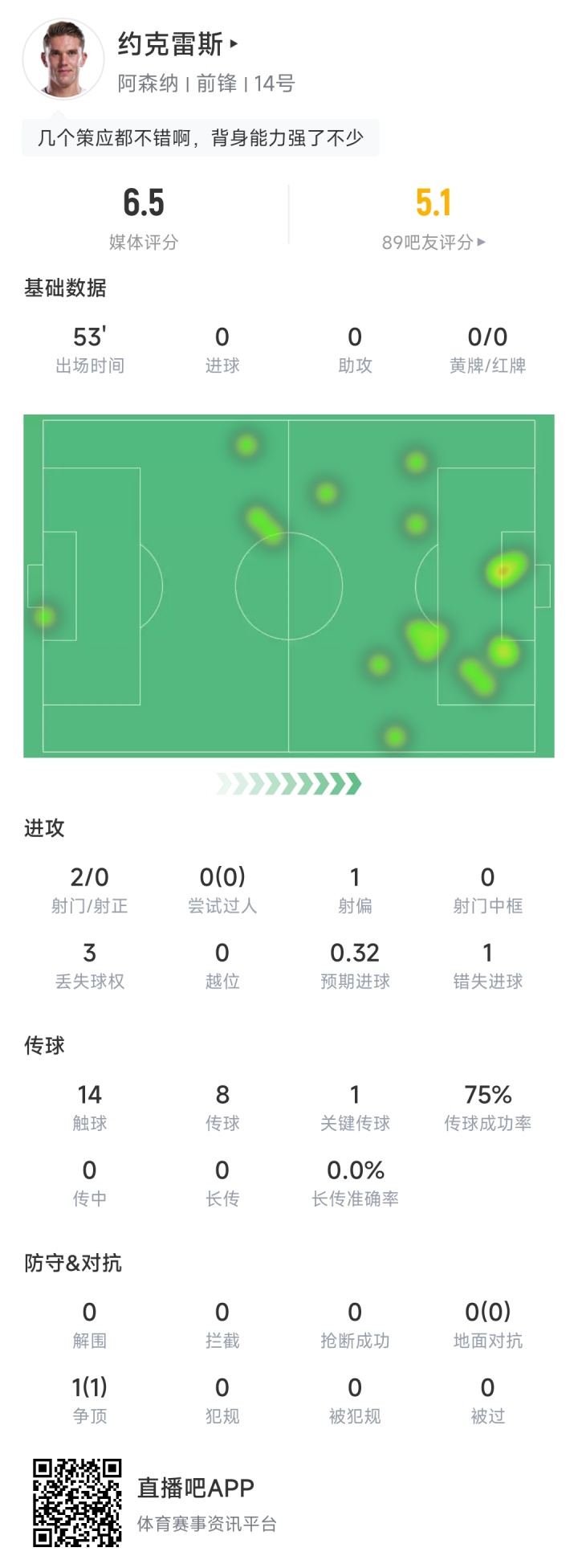 09月13日訊 英超第4輪,阿森納半場1-0領(lǐng)先諾丁漢森林,阿森納前鋒約克雷斯首發(fā)出戰(zhàn),上半場數(shù)據(jù)如下。