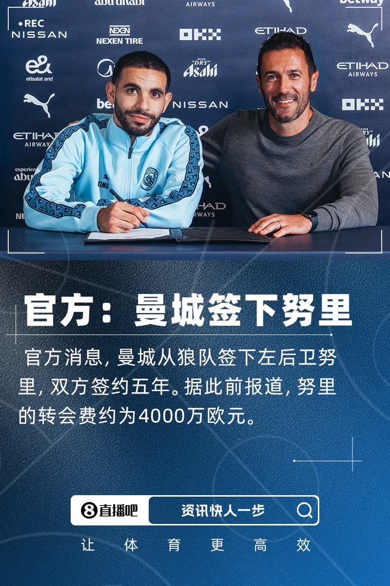 6月10日訊?官方消息,曼城正式簽下24歲的狼隊(duì)左后衛(wèi)艾特-努里,簽約五年。